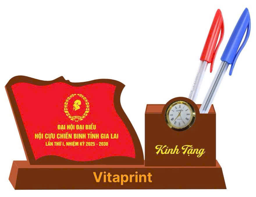 Đồng hồ để bàn gỗ tự nhiên 100% có lọ bút